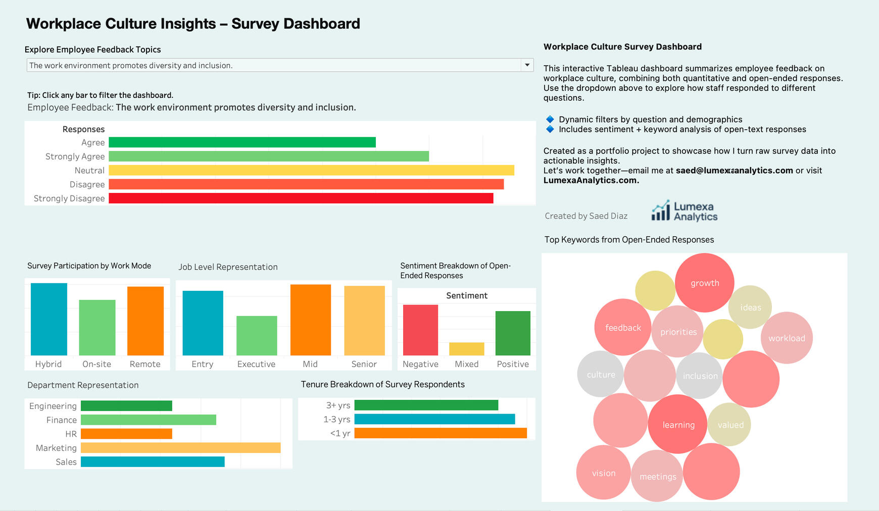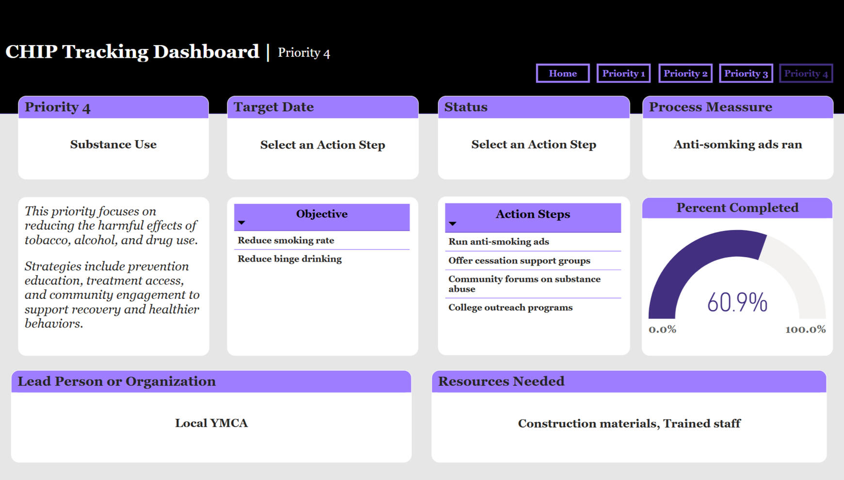 Our Tableau Survey Dashboard is ideal for sharing insights with broad audiences. Designed for storytelling, it turns raw response data into intuitive visuals—great for CHNAs, stakeholder meetings, or community presentations.
